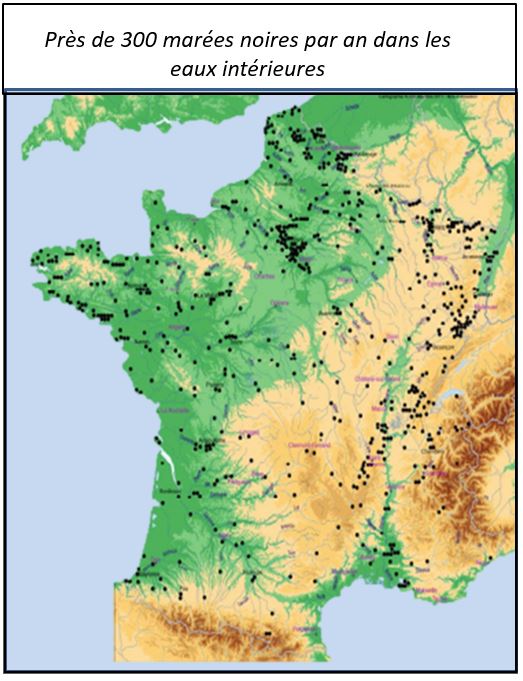 Plus de 300 pollutions aux hydrocarbure par ans dans nos cours d’eaux Sans compter plusieurs centaines dans nos étangs et lacs.